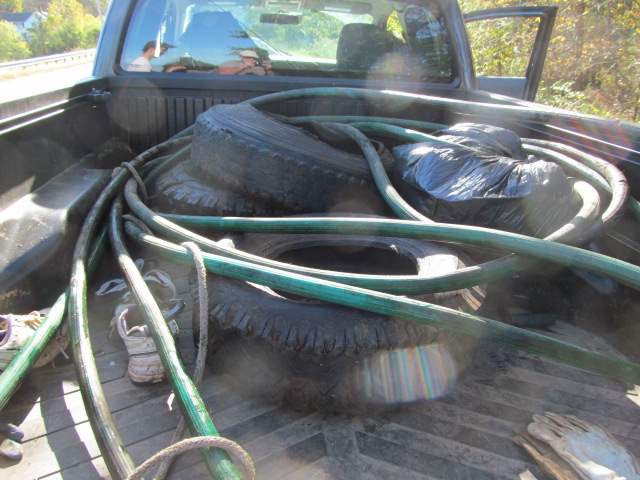 10/22/17: Nyle, Luke, Mike and myself way up the Rockaway creek, a tributary of the Lamington river, it was quite a hike from Rattlesnake Rd. We left the giant tarp in the Lamington, it was just too big.