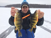 headed back out this morning with skunk city headed out to woodport area and had a few flags and few small perch to show for it. Made a wiggle to a drop off we found with deepest being 14 feet water and couldn’t keep up with the tip ups, all nice big perch and a decent bucketmouth. I had one big bait swinging for the fence but no takers. FLAGGGG!![]() ![]() ![]() ![]()