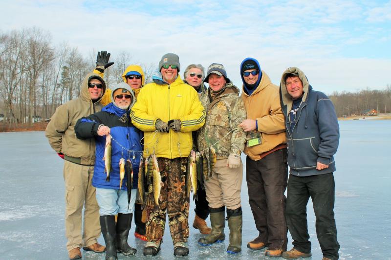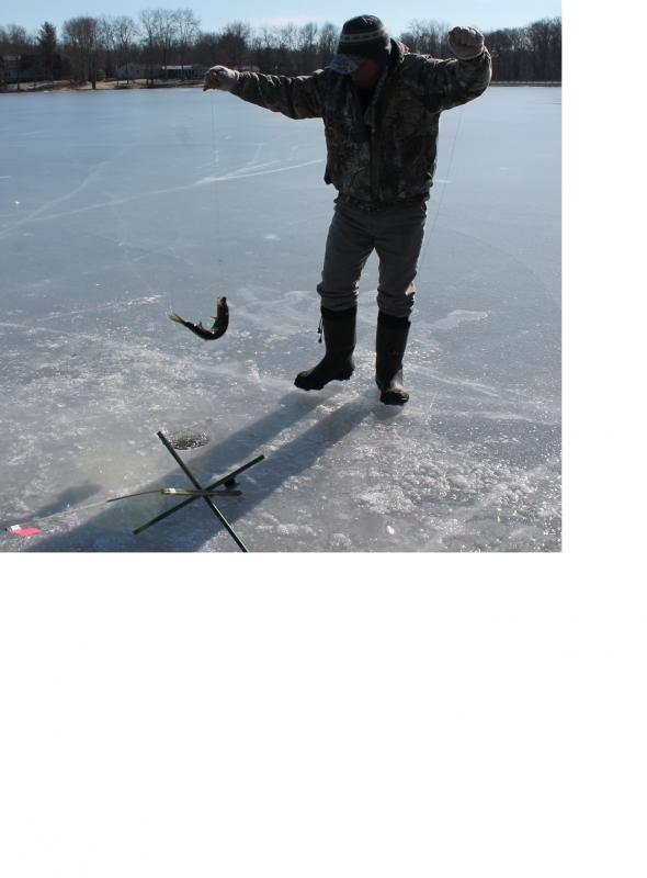I hosted some of my buds up the lake on Saturday for a day on the ice with good eats, bon fire , lots of laughs and lots of flags. With the low pressure approaching the fish were on the feed and gave us a great day of chasing flags. Perfect conditions on the lake and we were treated to a bald eagle keeping an eye on our festivities and making a drop this morning to clean up some of the feed we left for her on the ice. Very Cool... I think she really wanted the crock of chili but that didn't last long...