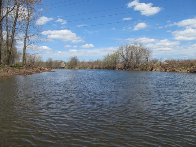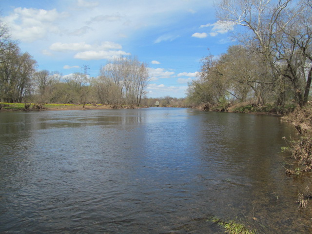 Taking my lumps lately on the river. Last week fished the Somerville stretch before the clean up, not a sniff. April 23 fished the Headgates area, Duke Island Park, Robert Street and Orlando Park with only one little stocked Rainbow to show for my efforts. Today 4/24 I decided to hit the Manville/Bridgewater stretch behind Torpey Athletic Field. I wasn't fishing more than 5 minutes when I got locked up into something big ! Fought like crazy running me up and down the river. Finally eased her into the net, ut oh, net too small, she flops out, 2nd attempt with her head way down, got it, a HUGE Rainbow Trout ! Look for a good spot to take a photo on the bank. Took the jig out and laid out the net with the trout on top, reached for my camera and with a flip of her body, bloop, right back into the water !! All I could do was stand and smile as she swam back into the depths. Nice clean fish, great color, full fins, every bit of 5lbs and at least 2 feet long. I have a photo of a similar trout I caught on the Raritan river a few years ago near Robert St and that one was an obvious Brood Stock, this trout was much nicer, and caught far from any stocking points. Some fish were just not meant to be photographed ! Took a photo of the empty net anyway