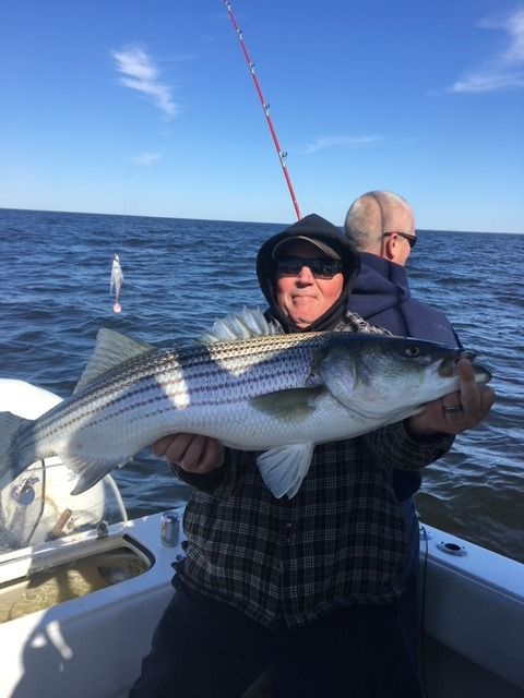 Excellent fishing again today with stripers to 34# on live bunkers. Weather looks great this coming week. Give Capt Derek a call at 732-861-3394 for reservations.