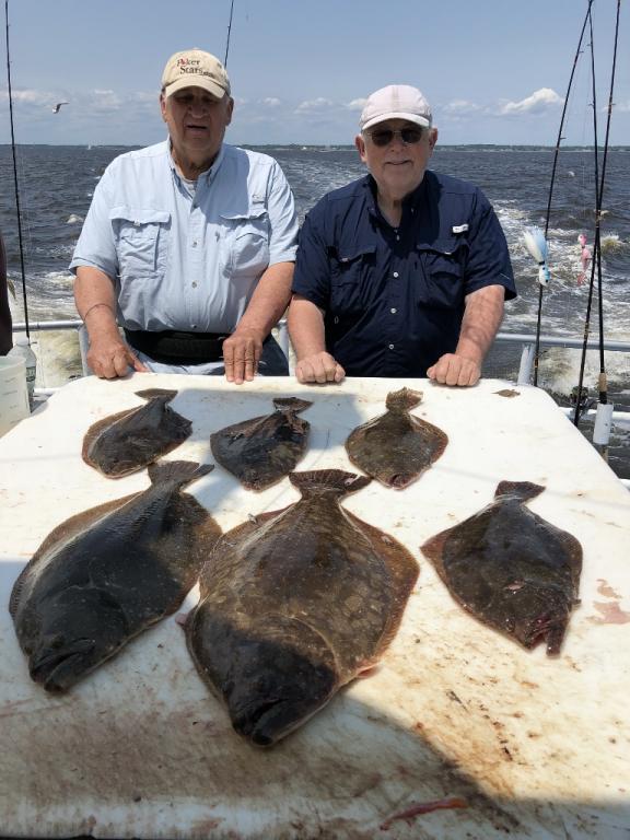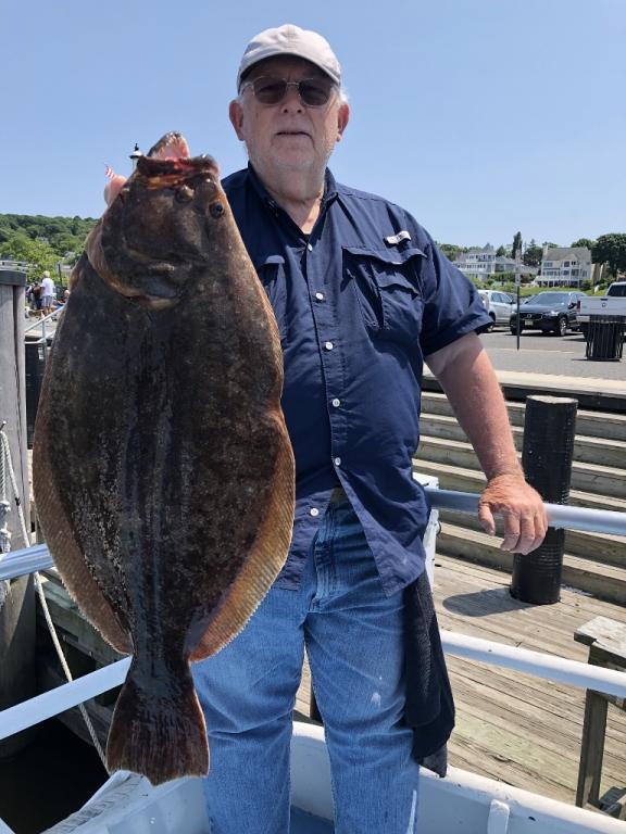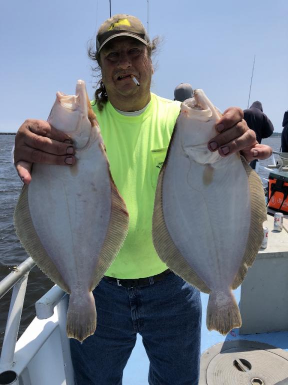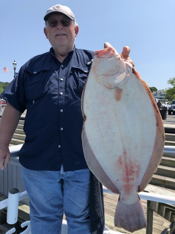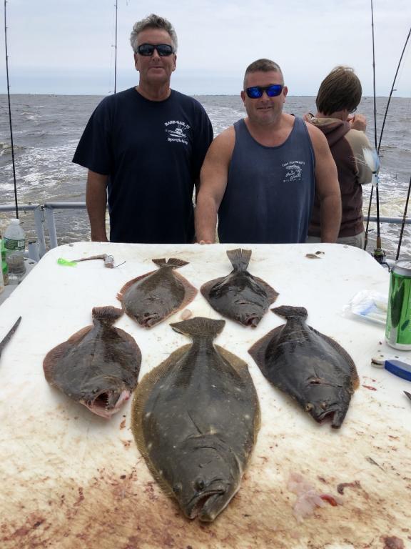 Good fluking today with limits. John Brock had his limit and looks like a new big pool leader. We will be weighing the fish at the dock.