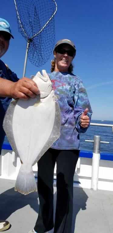 Hey gang, it was an ok day fluking today. We had a dozen anglers and had 3 or 4 limits. Ellen had her limit and almost won the pool today but she was 2nd runner up with 5lb fish, it was the 6lber that won. Here's a few pictures from today's catch. See you tomorrow 7:30 a.m. to 2:30 p.m. Thx, Capt. Scott