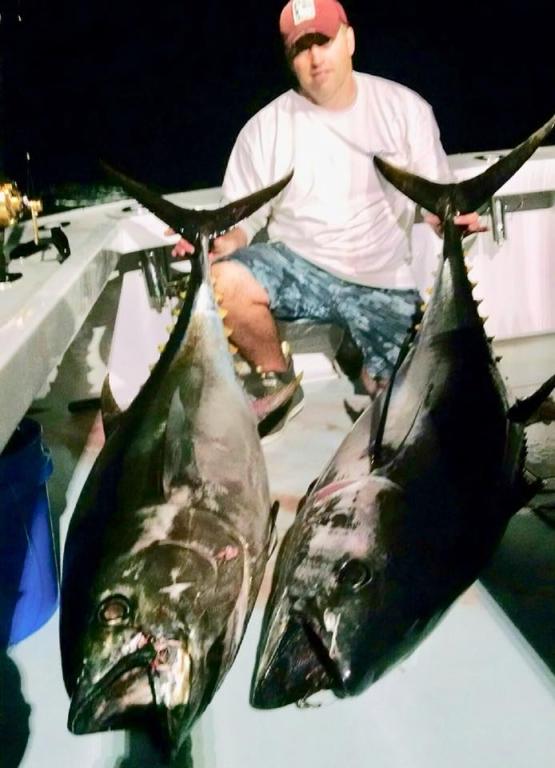 Capts Ryan and Alen had Cathy, Jeff, Kevin, Barb, Eric and Andrew out for a canyon overnight open trip .. they had good fishing, catching 9 YFT, 1 BFT and finishing off the trip with a pair of nice Bigeyes in the 140-150lb class. Our other 2 boats had a combined 42 YFT as well so Canyon fishing remains strong. With cold shelf water and warm gulfstream filaments, the fish are much easier to find this time of year than later in the summer .. now is the time to go