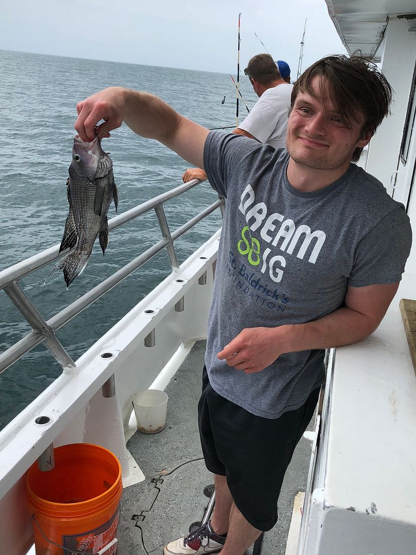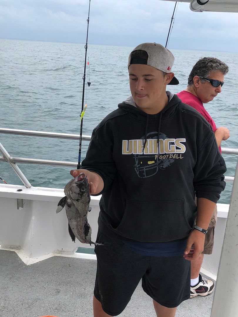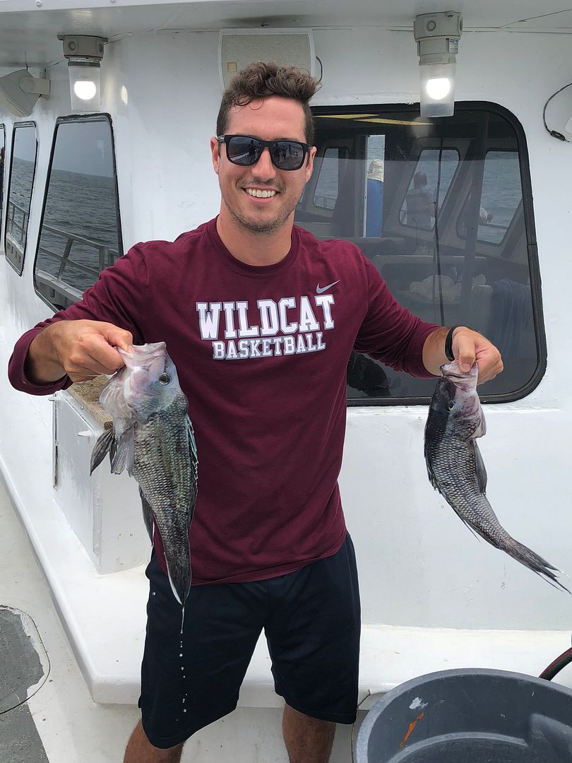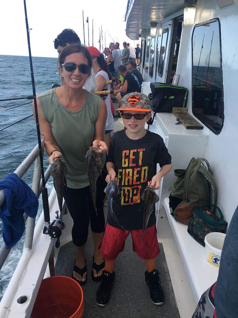 Yesterday afternoon we had lots of action for most of the trip. We couldn’t really drift because of the breeze so we anchored up offshore and hit the sea bass. We pulled in a good mix of keepers and shorts, and everyone on the boat caught some fish! The wind picked up a lot in the last hour, and the action dropped off almost entirely after that, but all in all it was a great night for some family fishing fun!