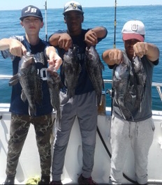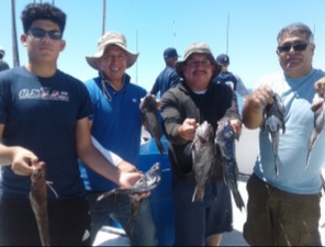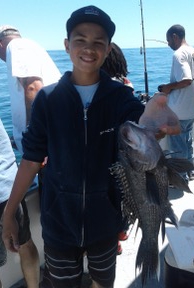 We had another day of EXCELLENT SEA BASS fishing. There were limit catches all the way around with lots of action. We didn't have a long boat ride so there was plenty of fishing time. It was excellent weather, the ocean was flat and it was just a gorgeous day out there today.