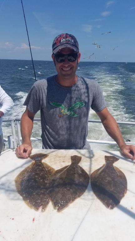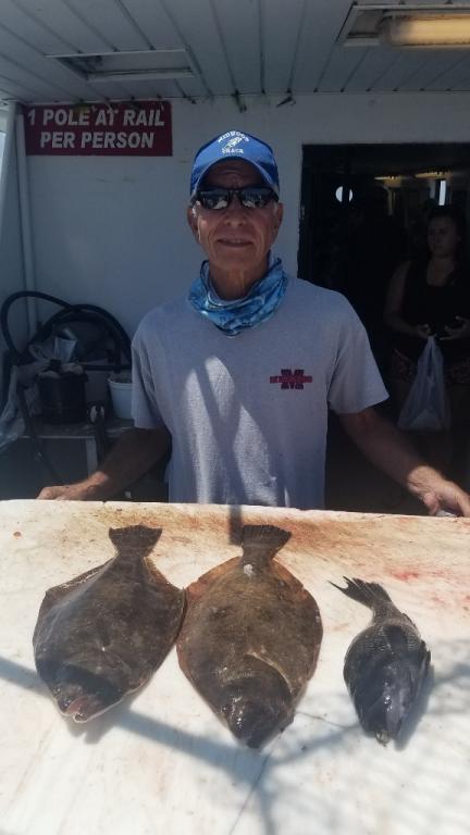 We had some fluke first thing before the other boats got out, The drift was fast and you had to work hard. Jim Custer had a quick 2 keepers by 8:00 AM and never got his limit. We picked all day with some doing OK while others blamed it on Fri the 13th Only one limit today.