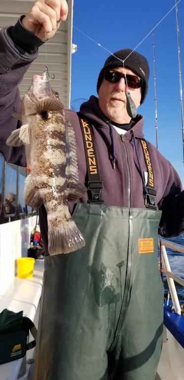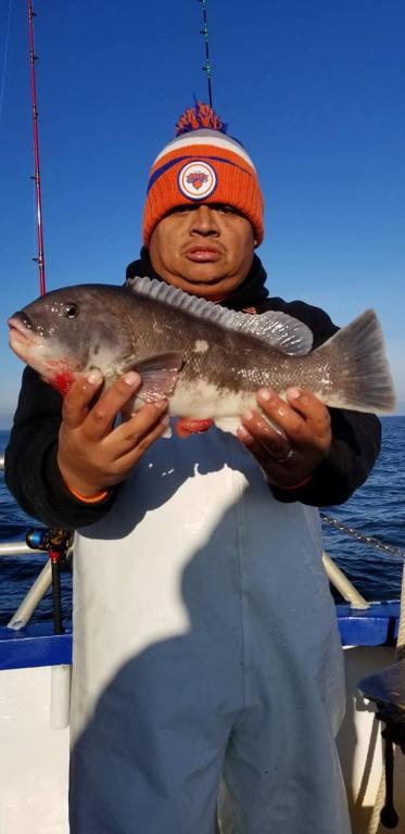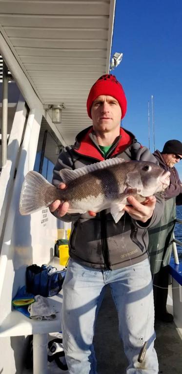 OK Blackfishing Saturday December 1st. Hey gang, the ocean was like a pond today as you can see in the 1st picture. Had 22 customers, good guys on the boat. Made 3 drops at blackfish chewing on all 3. We are still fishing. Jimmy Custer one the pool with a 9 pounder biggest one this year for us. Eddie in the corners high hook with 3 keepers and pretty much everyone averaged 2 keepers on the boat today with many many shorts fish released. Captain Jack will be at the helm tomorrow Sunday. I'll be back Monday. Looking forward to getting back out here we hope to see you at the dock. Thanks Captain Scott
