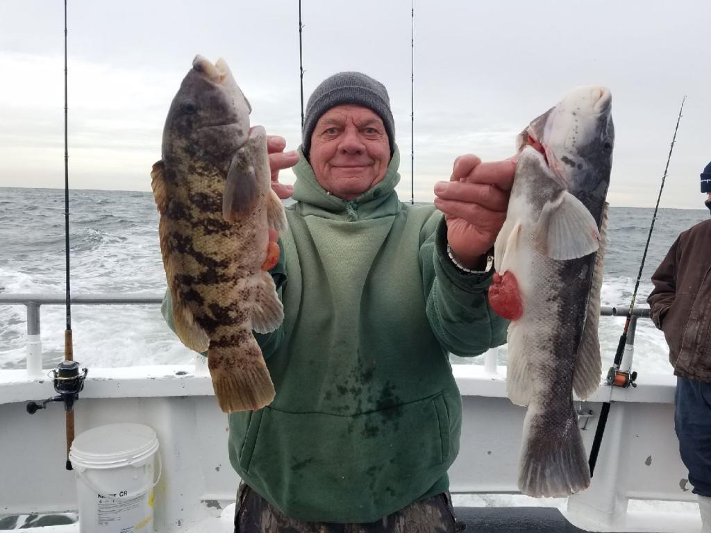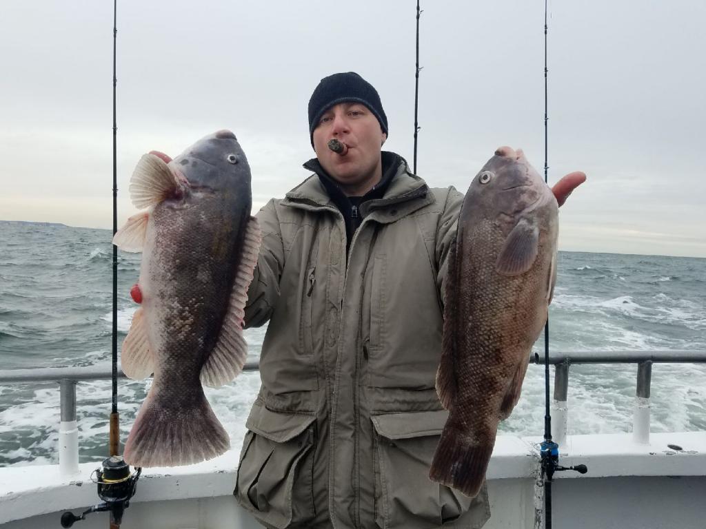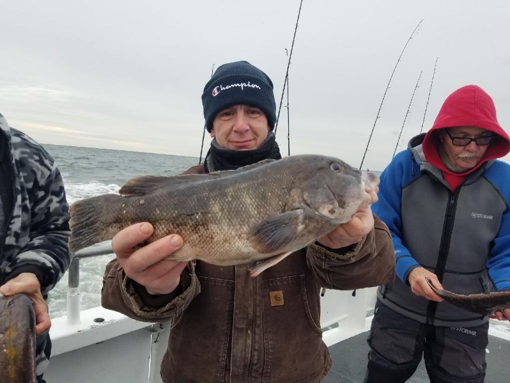 Not my kind of weather,,,blackfish weather for sure but man it was chilly if you ask me today...Grey and dreary....Fish were sluggish for us early,,,mostly shorts scattered around the boat....but just not a good chew,,but late in the afternoon they started up for us and we banged away at the fish....High hook I believe was Frankie,,,he had 4 keepers and maybe a dozen shorts...Some others ended up with the usual 1,2 or maybe 3 keepers and shorts..Some got the skunk but luckily they chewed late for us and we some ended up decent...check out some pics...Tomorrow looks very nice,,,with west winds in the forecast...See ya for coffee..we are fishing...