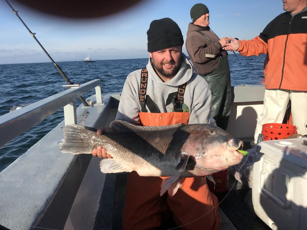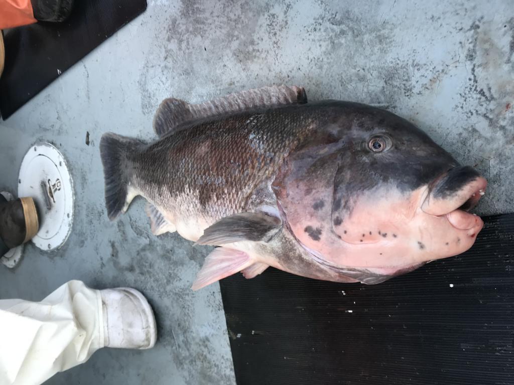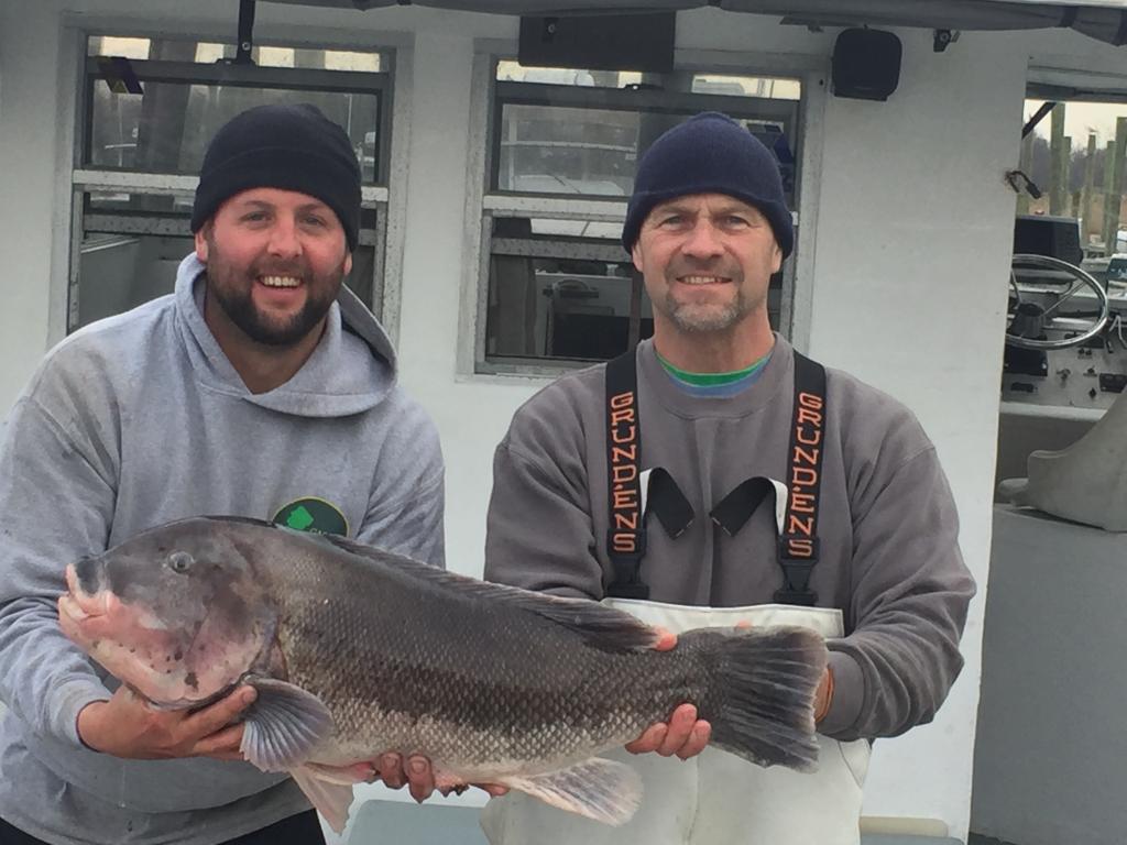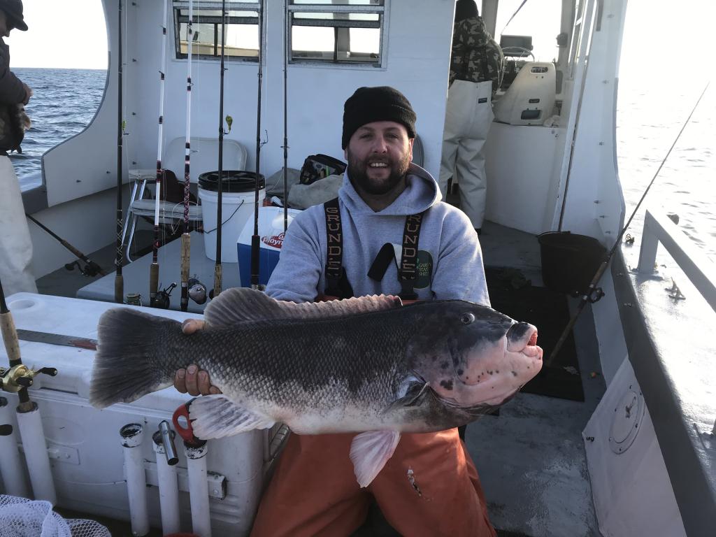 Yesterday 12/1 I caught my personal best weighing in at 19.58#, a true New Jersey tog. I was fishing with captain Kevin on the GOIN DEEP. The fish was caught on a custom black hole rod built by Garone rods, 20# suffix 832 braid, 20# seaguar fluorocarbon leader line, and a 2oz tidal tale jig. Unfortunately we couldn’t revive the fish. Once in a life time catch.