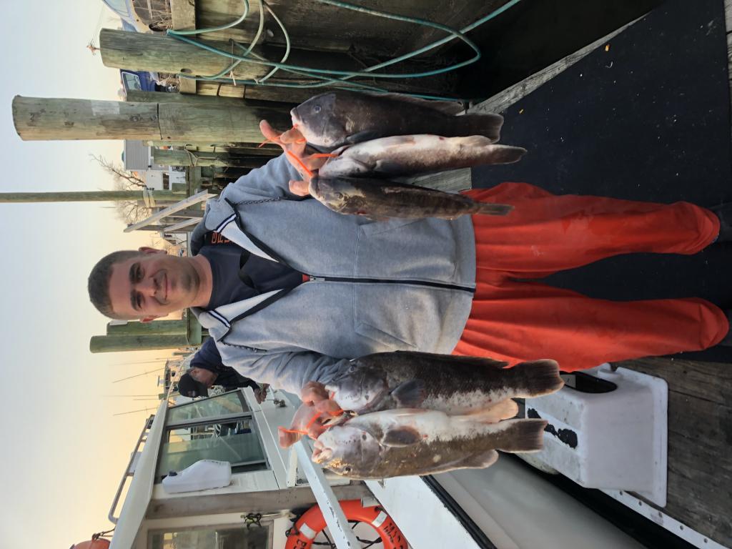 We had an excellent day today, with blackfish. Many limits and a very nice quality of fish. Three fish were over ten pounds , two of them were Taken by the same guy who never really caught blackfish before and the other one which was the big fish our biggest so far this season 12 1/2 was scored by veteran blackfisherman Joe Gorden . We had people over their limits throwing fish back and some people only caught a few but for the most part the boat is pretty much got a full boat limit, many of the fish were four or 5 pounds. After the last two weeks of ten to one short aato to keeper ratio , It is very hopeful that some big fish are finally starting to bite. ( all three big fish were photographed and released both guys were real sportsman )We had some excellent fishing before but not really big fish. We still had some shorts , and not every fish was four or 5 pounds somewhere 16 inches but overall a very good average of large fish . Hopefully it continues , and the weather is with us through the first of the year at least. We have an open boat Thursday , tomorrow we are completely booked and we have room on the weekend weather permitting call for information and reservations Photo to follow