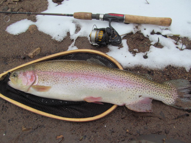 Need the patience of a Saint sometimes when it come to winter time trout fishing. Trout taped out at 22 inches and released, kept the trash.