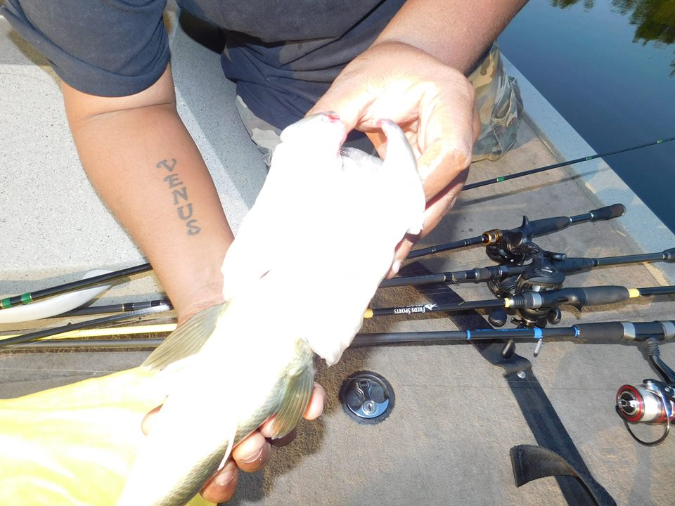 The bass are more likely victims of those terrible culling systems the bass tourney guys use. They punch through the lower jaw with a stringer type clip????