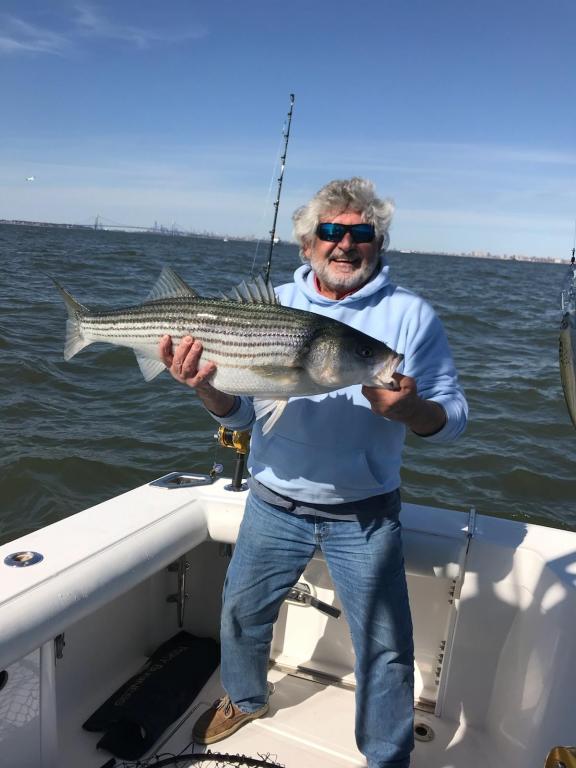 I thought I saw a treble hook in back of the dorsal fin on that striper. LOL