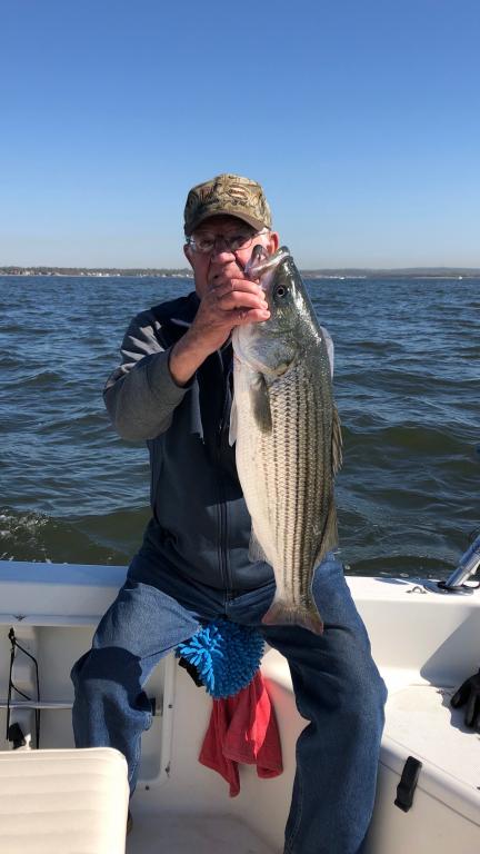 Got my dad who's 80 out on limits of Stripers today with buddy Tommy. Got our limit into release mode and off to the office to see patients. Tight Lines!