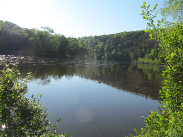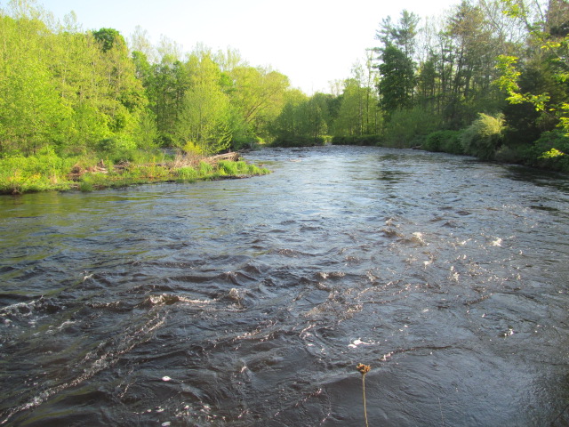 What do you call it, the Bushkill river, stream, creek ??? Whatever you wan't to call it I had a fun (but short) time fishing the Bushkill near the Pocono mountains in Pennsylvania. I really enjoy the Keystone state, people are very nice, it's very clean and people seem to move at a slower pace than us in New Jersey. Again I was greeted by very high water that I was unable to wade safely. I walked a path that ran along the river from the road and before I knew it I was staring at the Delaware river !!!