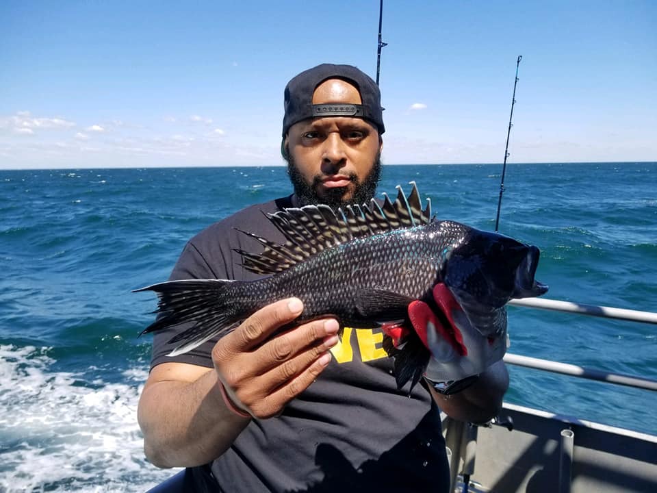 Pierre Lucceus from Linden NJ with a 4.6LB Sea Bass.