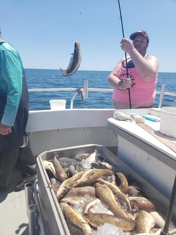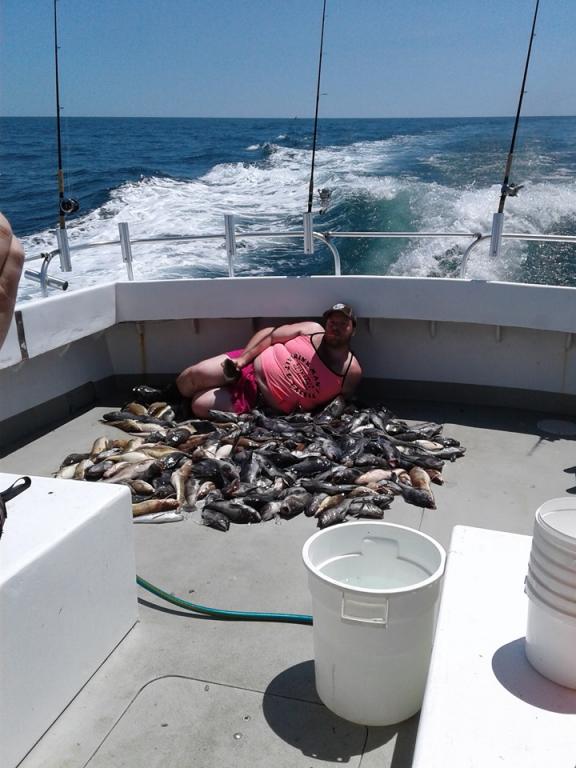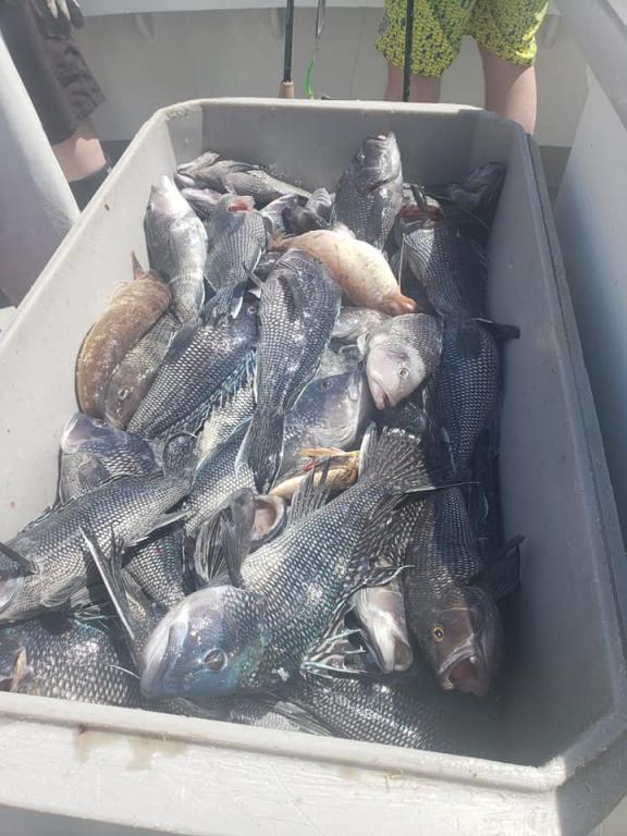 What a weekend! First Devon & I had amazing accommodations at Chalet Ragusa then 2 days of drop & reel bottom fishing. Sunday had our boat limit of sea bass & added 50 mountain trout on top of it. Monday took Dev out for her 1st trip on monger & it was silly fishing. Ended with boat limit of humpies & added 70 big ling to the box & the last whiting! Pics say it all