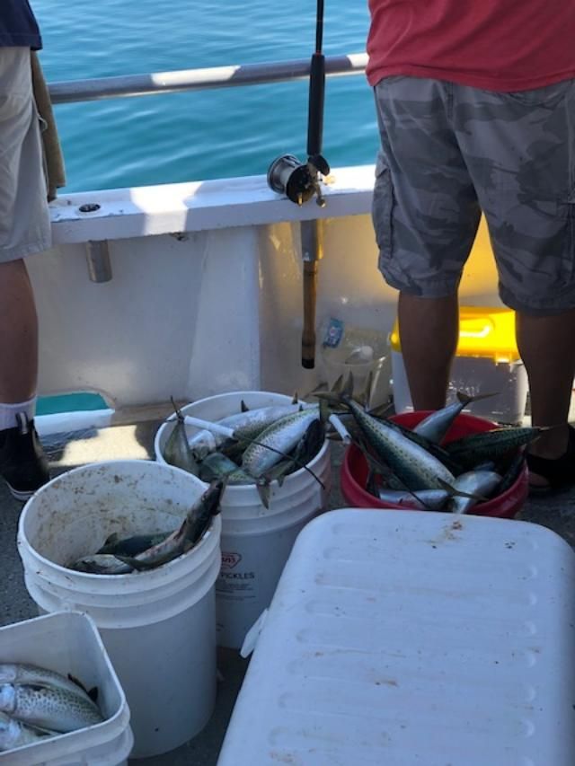 This morning, we had another great day on the Miss Belmar! We ran offshore, anchored up and and started mackerel fishing right away and just completely slaughtered them! We also had a nice catch of ling with blues mixed in. Everything was caught on bait. Our pool winner was Jeff Brunner from Lawrenceville, NJ.