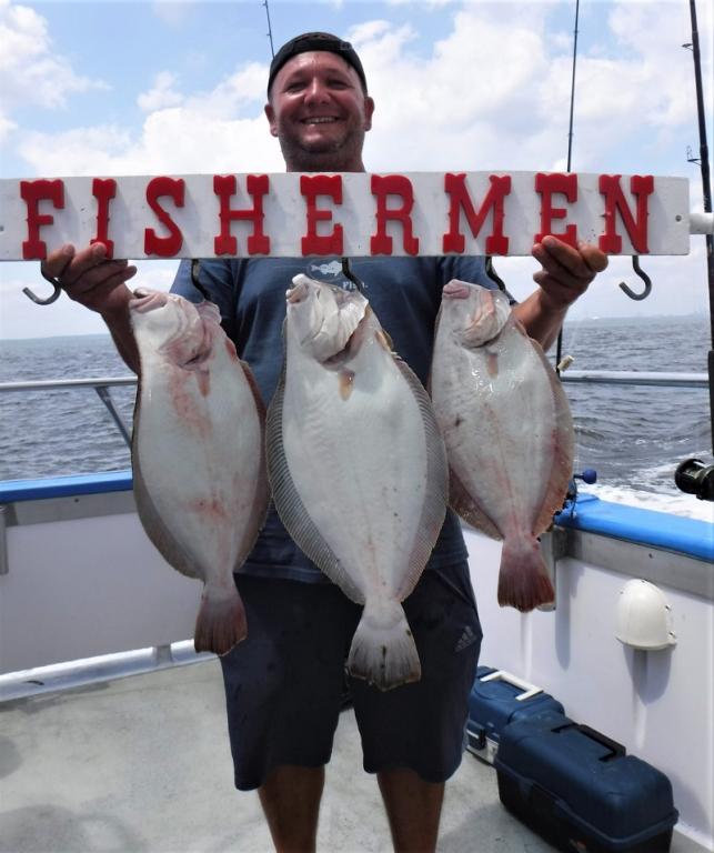 Awesome day out there today with a great group of Customers and not One drop of Rain! Slugged away each drift on shorts and some keepers with very good Sea Bass fishing. I was looking out the front window watching Bill Venezia fishing in the bow when he got slammed! Never ran so fast getting down the steps as I knew it was going to be a nice fish, and it was. Bill is our new Monthly pool leader with a 6 Pound 11 ounce beauty. He also had another keeper and close to 30 short fish. We did have a limit of nice Fluke and several nice keepers around the boat by days end. Largest Sea bass made 4 pounds! CHARTERED THIS WEEKEND BOTH SATURDAY & SUNDAY...……...SEE YOU ON MONDAY! CAPT. RON |
