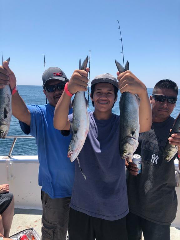 Fishing was not as good as it had been but we did chase and pick at the small BLUES today and also got a few BONITO. Bring your light tackle if you have it but if you don’t we have tackle on board.