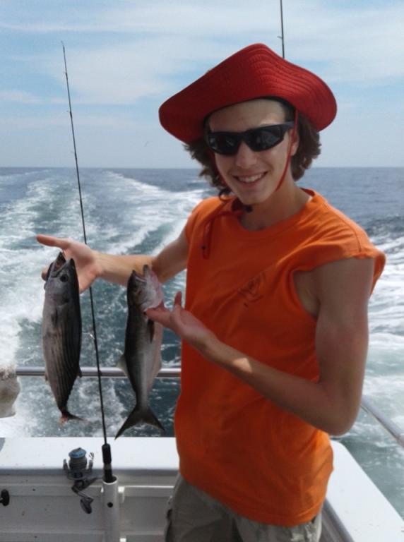 We went offshore fishing again today and it was a beautiful day on the ocean. We caught some BLUEFISH and some BONITO. We had one large BLUEFIN TUNA probably about 70lbs. which broke the line but we also saw about 4 or 5 others swimming around which was exciting. Everything was on jigs.