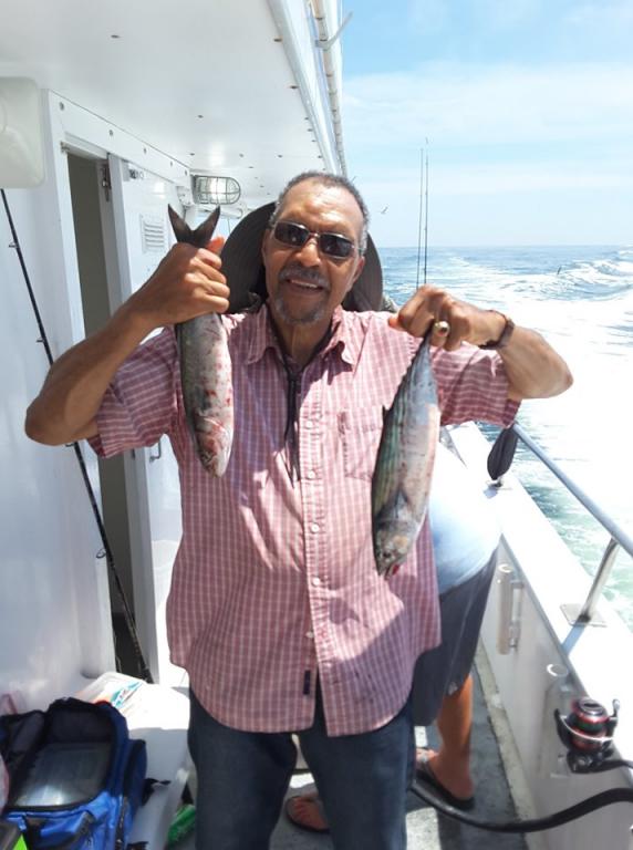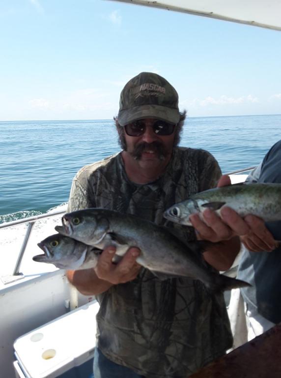We went offshore fishing today and it was VERY GOOD. We caught BLUES, MACKEREL, and BONITO on jigs and bait. We will be back out there tomorrow.