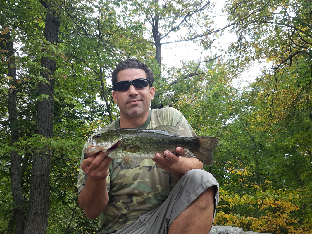Got the chance to take a hike up to a secluded lake in the woods and made a day of it. Started out throwing a small popper and had nonstop action for about 2hrs. Some bulky pumpkinseeds and a few Larry's later and switched up to a weightless 3" black mister twister grub which I took out of one of the bass' mouths that I landed. Figured he liked it, and was right thinking the rest would too. I won't bother adding a pic of my new PB yellow perch at 14" because that pic naturally is too dark so all you can see is a silhouette of the fish. But damn, he fought like a champ & when i saw him jump during the fight, I knew he was a monster!! Maybe next time I'll get a pic!😄