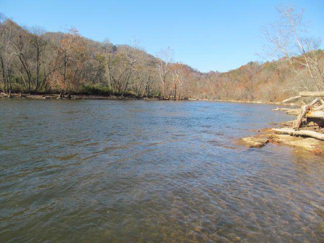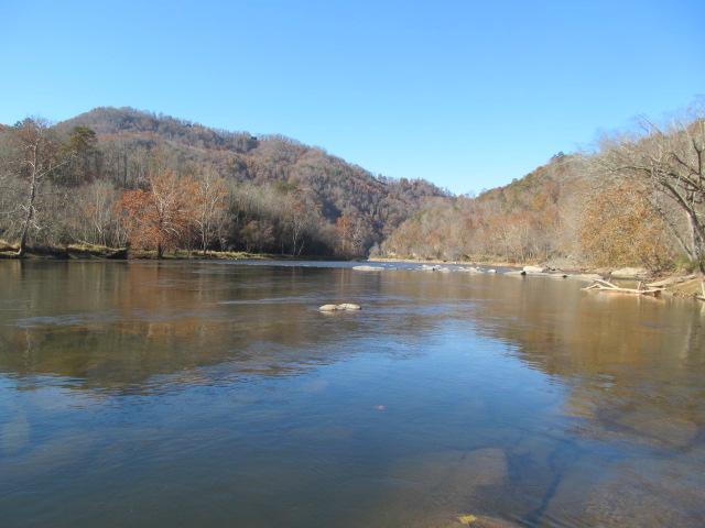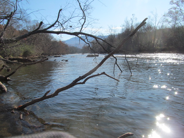 Had the place to myself and hit some pretty deep runs and holes, nothing, not even a follow ! Worked 2 stretches pretty hard for about 3 hours nothing. Packed it up and went to Dillsboro up river. Apparently this stretch gets fall stocked pretty well. Hit an access point and had 2 small "stockies" I guess fighting for my jig, one looked like a Brook Trout that they stock here. All was well and fine until the owner of the Dillsboro Inn decided to dump all his leaves into the river, I packed it up. Drove further up river and stopped at a bridge going over the river, saw what looked like a 3 pound trout, skittish and stuck out like a sore thumb so again I am guessing from the fall stocking.