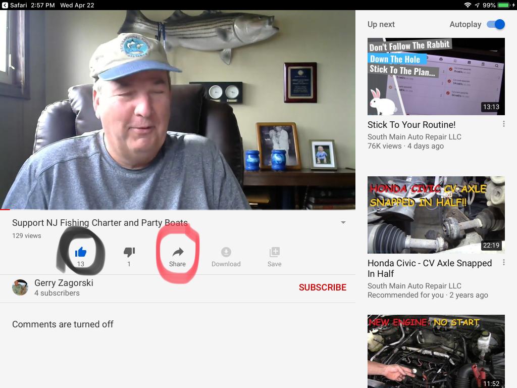 I clicked the link in your first post and it took me to Utube and your video. Good video by the way. But what I am saying is usually on Utube below the video is a share button and a thumbs up and thumbs down for likes. But for your video the share button and thumbs are not there. Like I said I don't know anything about posting on Utube but I guess when you post a video there are options for the share button and thumbs up or down. I hope you understand what I am trying to say...Charlie
