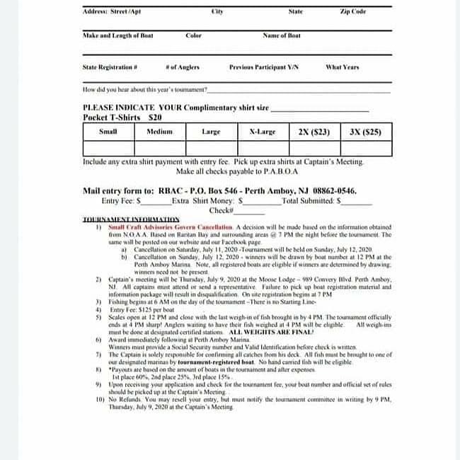 RaritanBay Anglers Club , is hosting their 30th annual fluke tournament July 11