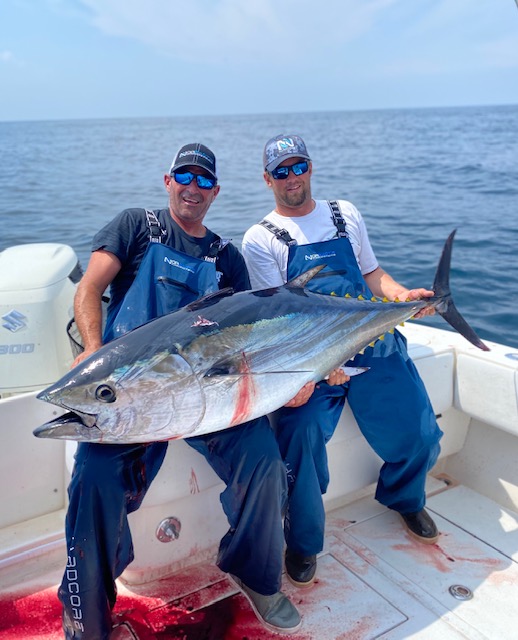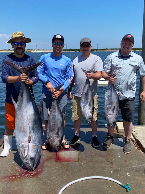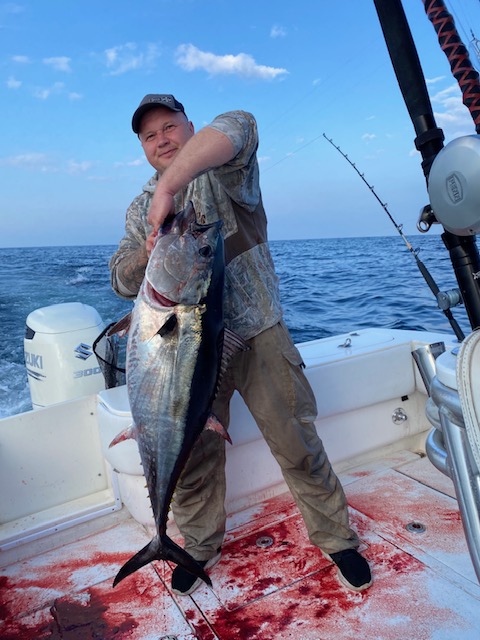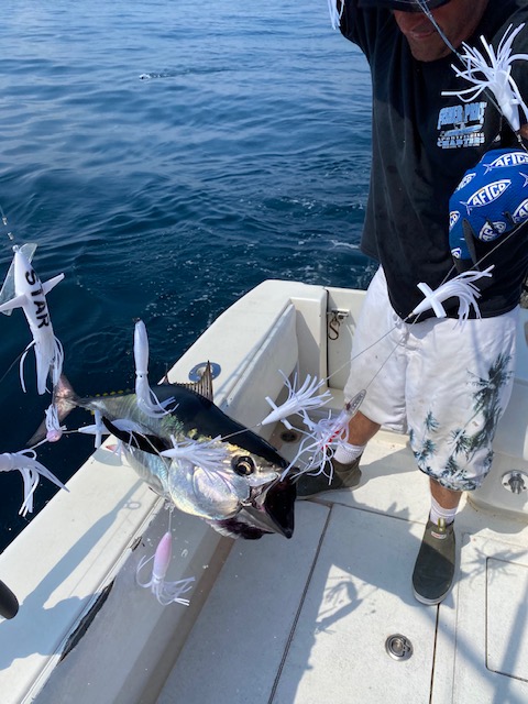 Had Pawel and friends out this morning for some bluefins. Headed right to where we had them the day before, but the life had moved on. Made a short move and had the life again. Picked away all morning landing 9 unders to 45" boxing our limit of 3 unders. At the end of the day we got our shot at our over. The guys worked together and managed to land a nice 61" bluefin. All fish taken on sterling wide trackers and splash bars.