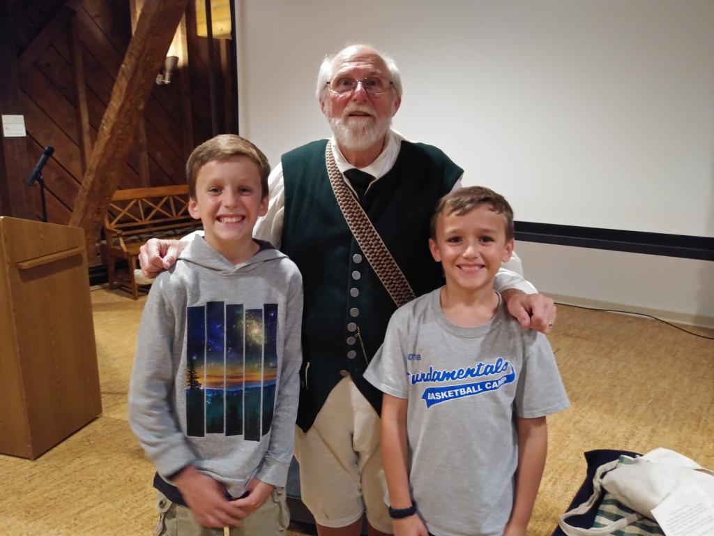 ...but the trip wasn't over. I had arranged for a little surprise for the boys. Ken Reinard and I had been talking and he offered to have us come out to a local pond and use some of the Colonial Era gear. They also got to fly fish a bit at the pond: