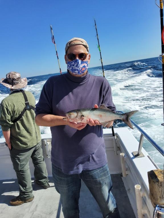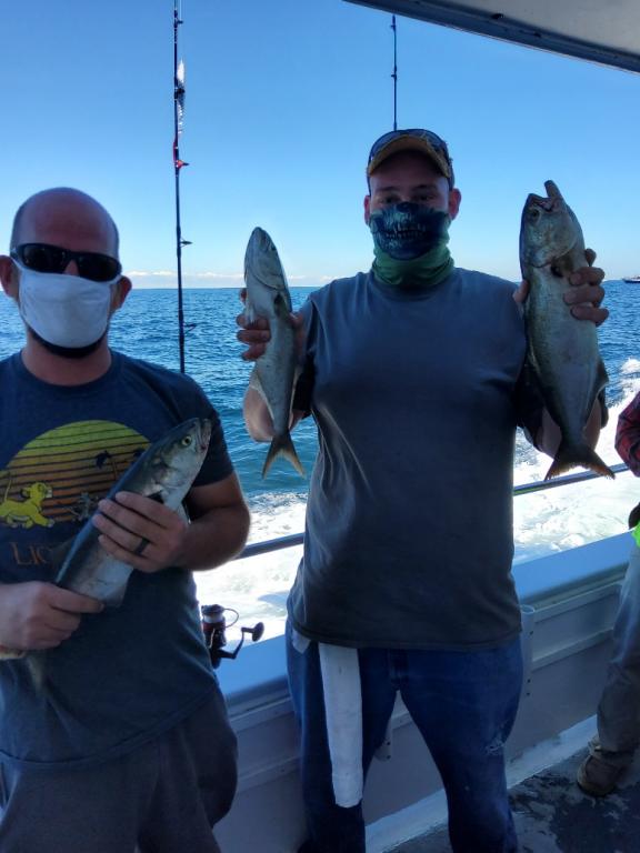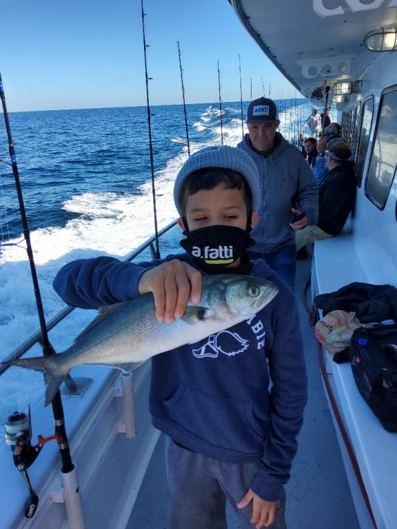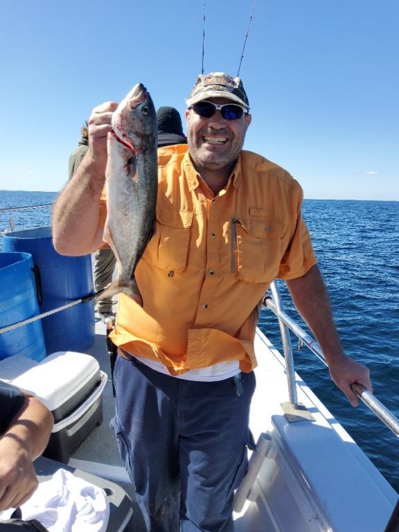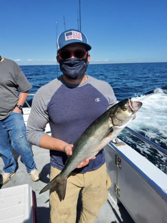 It was a gorgeous day in the ocean and we had some fish today just not enough. The fish were there and we saw them but they didn’t want to bite. The BLUES were 2 to 8 lbs. and everything was on jigs. We also had some nice throw back SEA BASS.