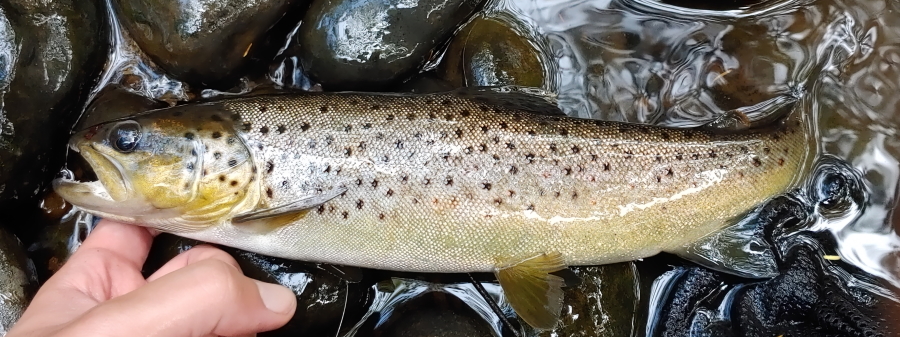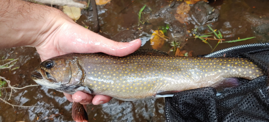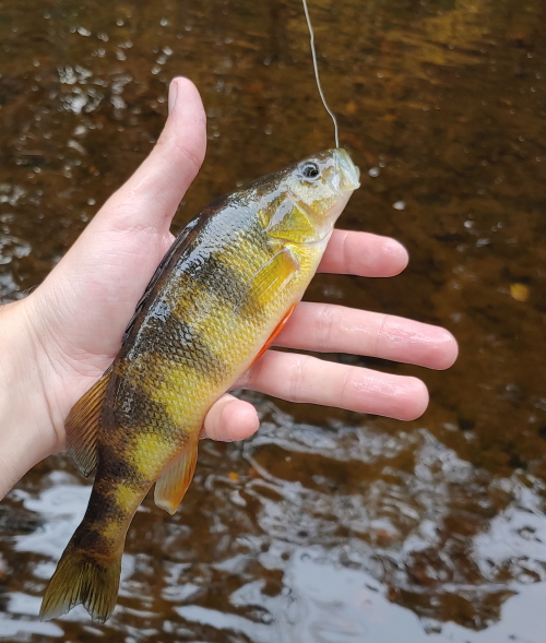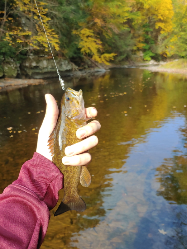 Crossed the Big D and fished a stream and one of it's tribs. The stream looked great but majority fallfish, two smbs, and redbreast sunfish in the deep-gorge pools. Think i spooked a trout or two in pocket water while crossing the stream, but eventually hooked into a a PB brookie, think it was a stocked fish. Also on my DIY inline spinner. That was it however for trout.
