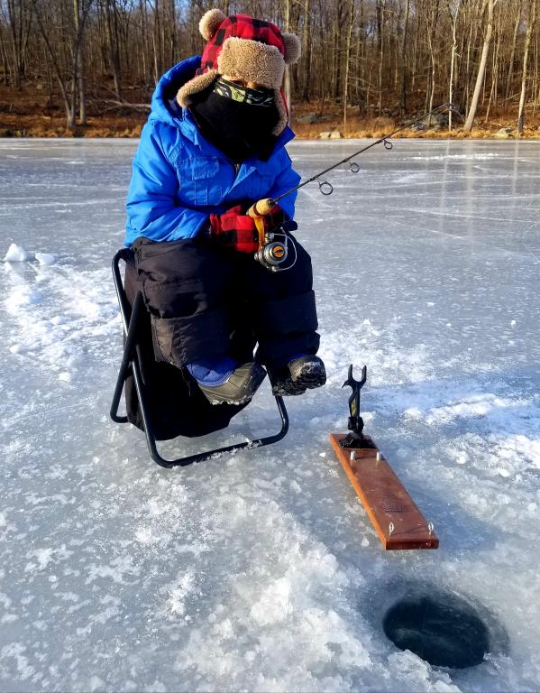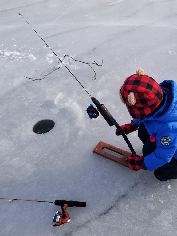 This is a good report the little guy is at it with the jig rod of all things, usually they do not like jigging as it requires some time to get a fish. A lot of time with no action can turn them off to jigging glad to see the young angler out on the ice, do worry you will get next time
