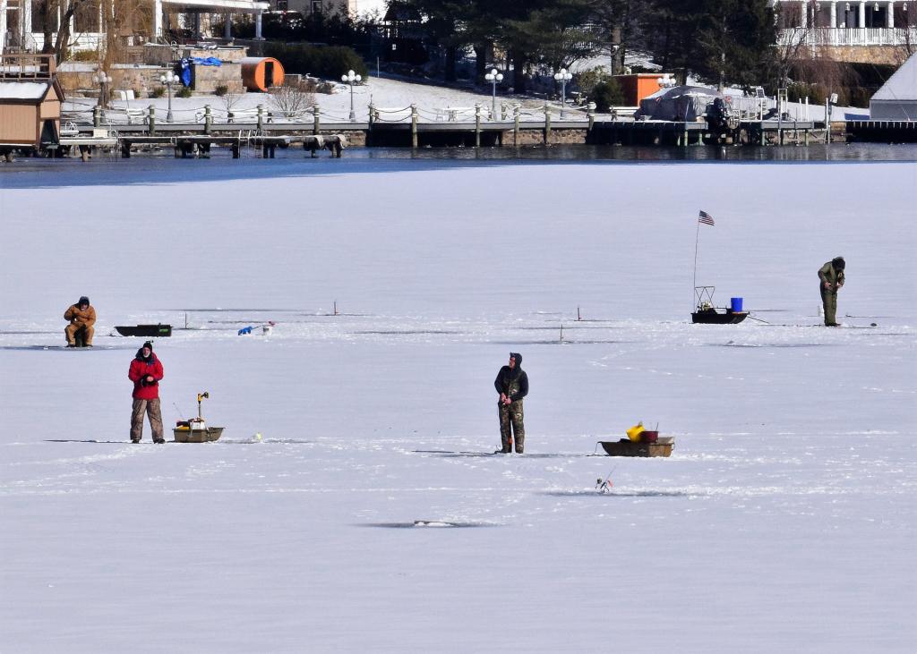 Is this you? You all were the only show in town today. The rest of the lake had no one or one or two fishermen. It might have been a bit bumpy even if you were in a boat. There was just so much open water that moving from place to place was very limited. If you found access to the ice and wanted to move, you pretty much had to get into your car and drive to another spot or be satisfied with where you were. It's the biggest lake in the state so over crowding is not a problem but with limited ice, be content to fish closer to shore. When ice fishing, there actually is safety in numbers. Groups of fishermen means there's enough safe ice to be safe.