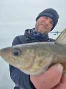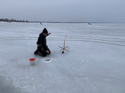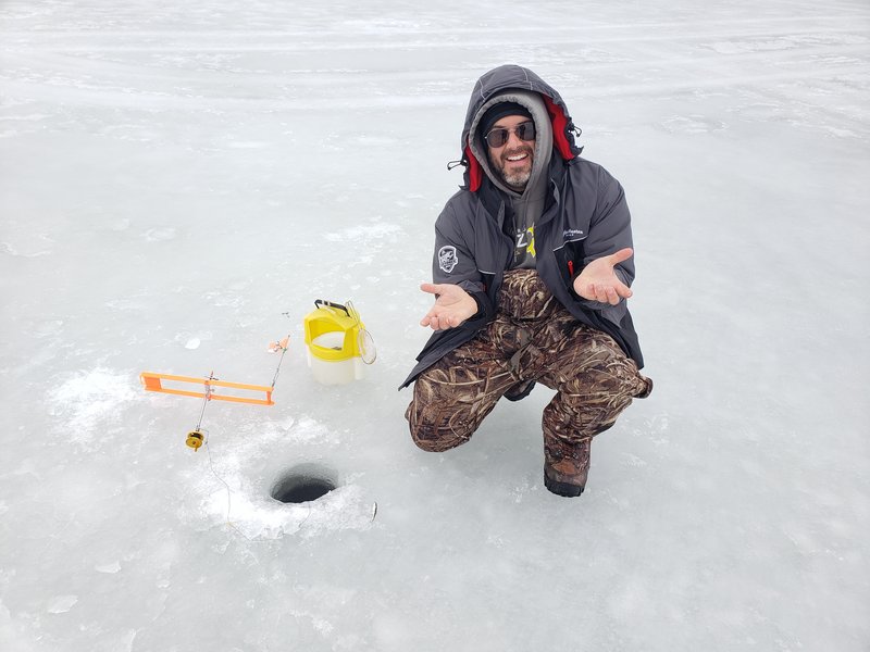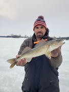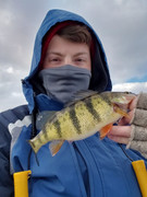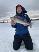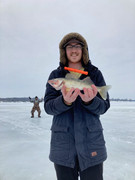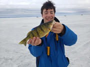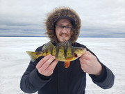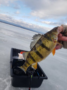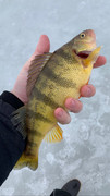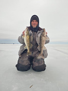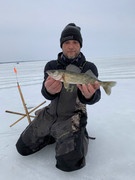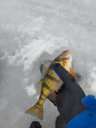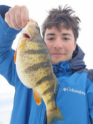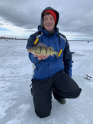 It was a great trip despite the full moon and constant pressure change and crazy winds out of every direction. Fish were caught, lessons were taught and learned I think! We went as hard as we could and it was slow from there to back home here in NJ this weekend. We picked and plucked at the fish the best we can and got some nice fish through the ice. Luke’s big Perch weighed about 2.34!lbs. according to one of those app things. Lol! The pics don’t lie! Sunday was are best day obviously and we pulled enough fish through the icy holes to make that fish fry happen and took home some fillets as well. Good times had by all with some awesome food and diehard crew. As for the crockpot ribs, I’m hoping the homeowner doesn’t leave them for us next time. LOL! I can make ribs on the grill way better then that........TIGHT LINEZ! FLAGGGGGG!!!! ![]() ![]() ![]() My tip up Walleye on Friday night was no slacker Luke! ![]()
