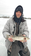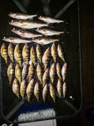 Fishing action wasn't hot, but jumbo perch and walleye kept the two full days of ice fishing interesting. Walleye were averaging to the smaller side some hot dogs, some 14.9 inchers, and a few keepers a day. Friday a few guys got to the lake early, a few fish and interestingly a mudpuppy(?) on a tipup. Monday the wind was so rough, and with checkout at noon, no one fished and slept in with a clean house left behind. I happened to catch a perch that was 13 inches long and 12 inches-girth. Supposedly at least 2 lbs. Might be the heaviest perch I ever catch in my life. Fonz and Nick had the biggest walleye of the trip, nothing huge but nice sized 20+ inchers. It was a great time with everyone! Great meals cooked and smiles all around. Some very hysterical moments lol. Plenty of pranks and jokes go around when the action is slow. I also learned how to fillet my first fish, yeeehaw! Eddie knocked it out of the park with the most amazing fried fish I ever ate. We need that batter recipe! I couldnt have spent a better weekend by myself. Im expecting more pictures to be posted, I dont have them all myself yet : ) ![]() ![]() ![]() ![]() ![]() ![]() ![]() ![]() ![]() ![]() |