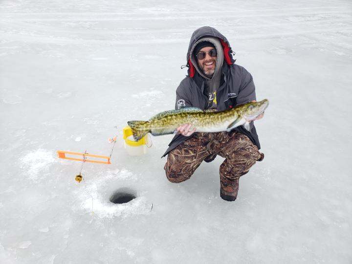 What an awesome weekend it was with the crew! This was only my second time ever ice fishing, certainly wont be my last! Caught my first fish through the ice, my first Walleye, and then my first keeper walleye all thanks to the guys! Eddie was right, lessons were taught and learned and I soaked up a lot of information. Tricking everyone with the Burbot pic was way too funny