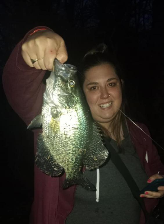 Than the sun went down & as the police searched the area for a wanted person Devon got a new pb sacalait! Pics don't do this thing justice easily biggest crappie I've ever seen in the philly/bucks area. She was able to land it thanks to her decade nanotechnology pro crapper. She got a promotion & slabzilla on same day, also she gets to sleep with me. Talk about lucky
