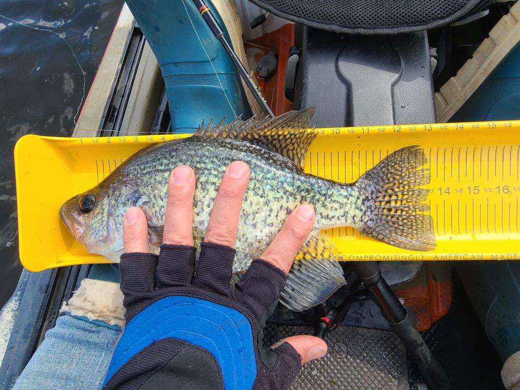 13.5" No record but a nice fight, hit a lipless crankbait.