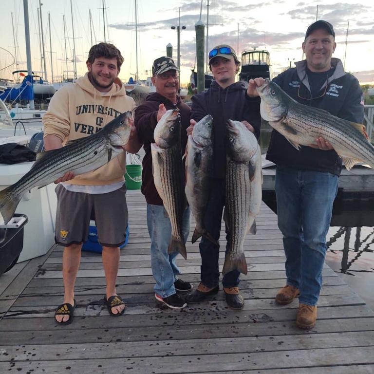 Afternoon Striper trip with Chip!!! Found them pretty quick and had big fish all afternoon. Had perfect weather and with the fish cooperating it couldn't have been better!