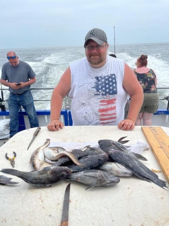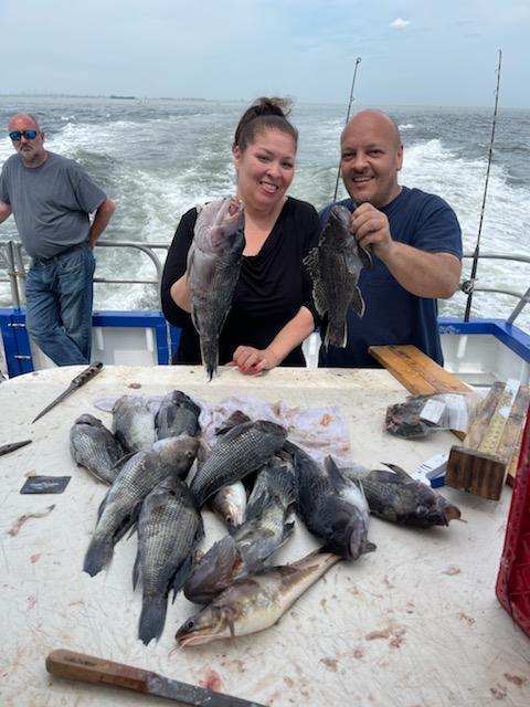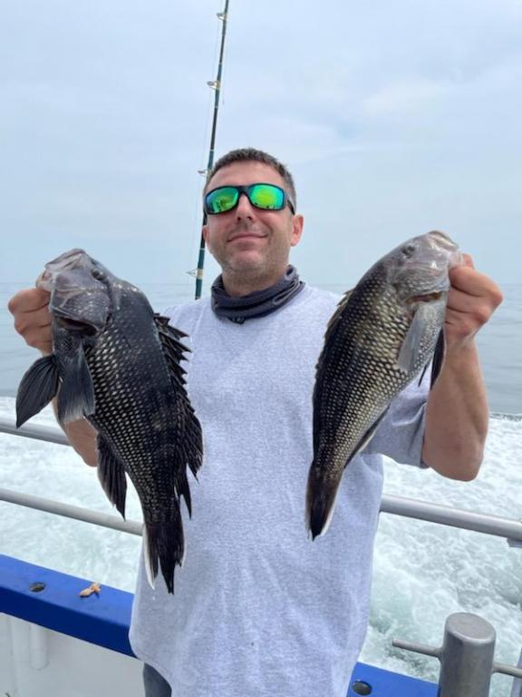 It was another beautiful day of fishing in the ocean. The fares onboard had sea bass and ling coming over the rails all day.By the end of the trip buckets and coolers were full with a nice mix.