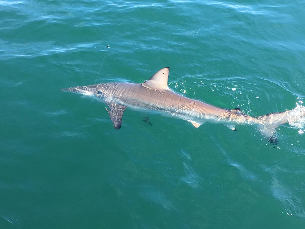 Cancelled our offshore tuna trip based on a blown forecast. Tried for stripers north of Asbury, tons of bait but only managed a few nice sharks on light tackle.