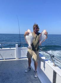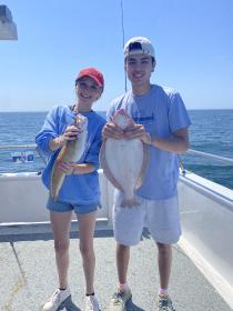Beautiful day on the ocean today! Lots of sea bass that we had to throw back because the season is closed until Thursday! 10 keeper fluke so far! We can't wait until Thursday when sea bass opens again! Come on out with us and get in on the action!