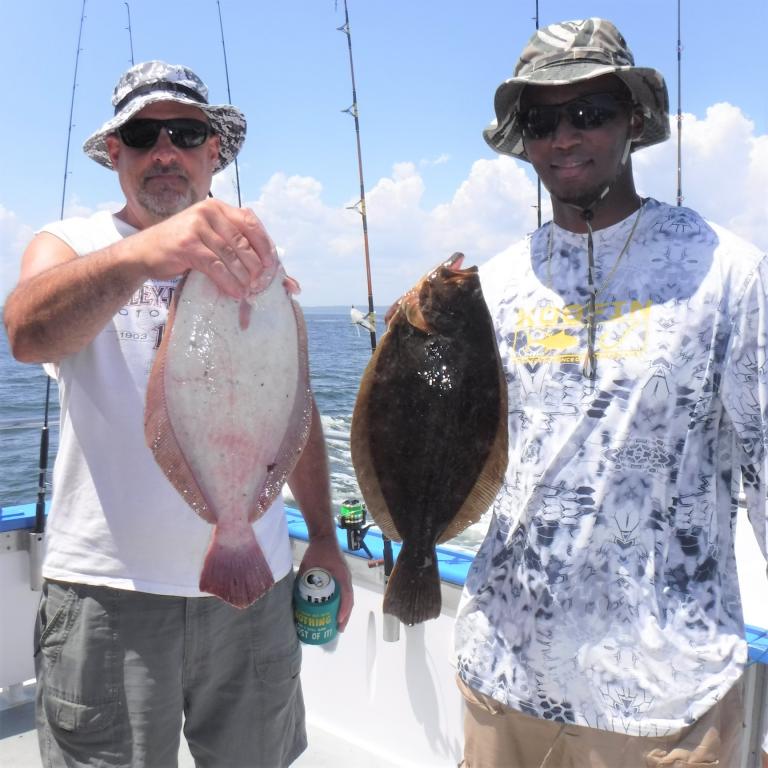 Managed a couple shots of fish today in several area's. Lot's of shorts but we did have keepers in the mix. Only one customer managed his 3 while several others had 2 by days end. Sharks are every where we go! Pool fish went 4 1/2 pounds. June Benson leads the Big Monthly pool with her 5lb 15 ounce Fluke caught yesterday. Back at it in the AM. Capt. Ron |