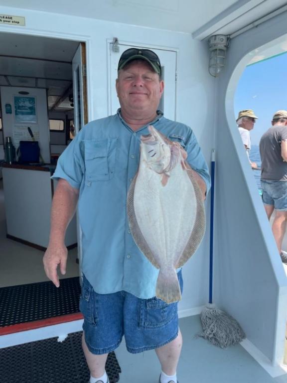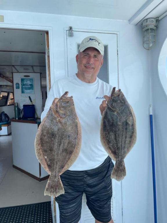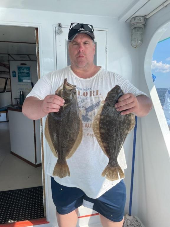 Another beautiful day on the water. No better place to be when it's a scorcher. Nice cool breeze on the water along with some really nice keeper size Fluke, great people, good tunes and plenty of short action. We sail everyday from 8am - 12:30pm & again from 1:30pm -6:00pm.
