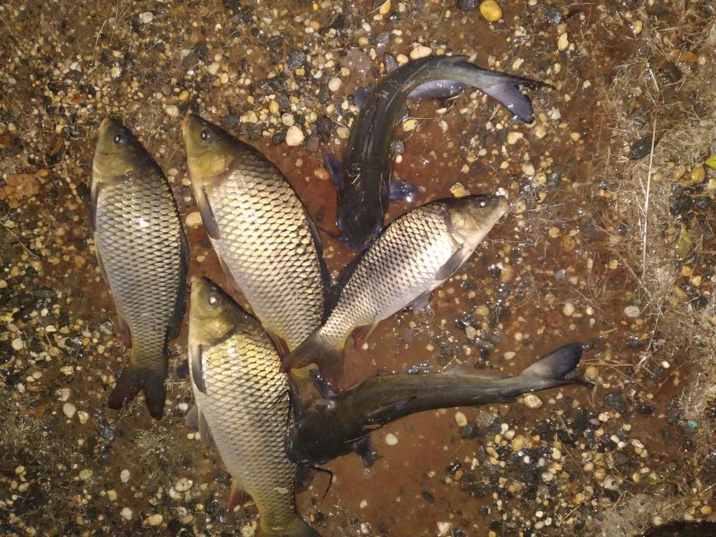 Common carp and catfish are eating my homemade corn meal bait at night in the 62 degree Millstone River. Looks like channel catfish were stocked recently.