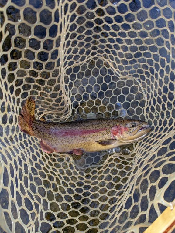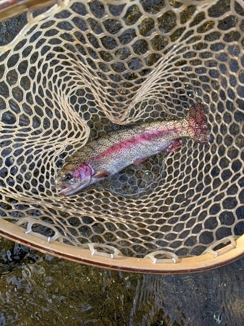 House/dog sat for a co worker and there was a pond in the back. Got the largie on small blue/silver husky jerk. Lost 2 other bass of similar size and caught bluegill on a float n gulp. Hit up one of the Musky TCA areas last Sunday. Hooked into 3 decent Rainbows. One on 1/16 Rooster Tail, natural/gold and 2 others on pink trout magnet 16 - 20" under a float. Found them in the faster, rockier parts. |